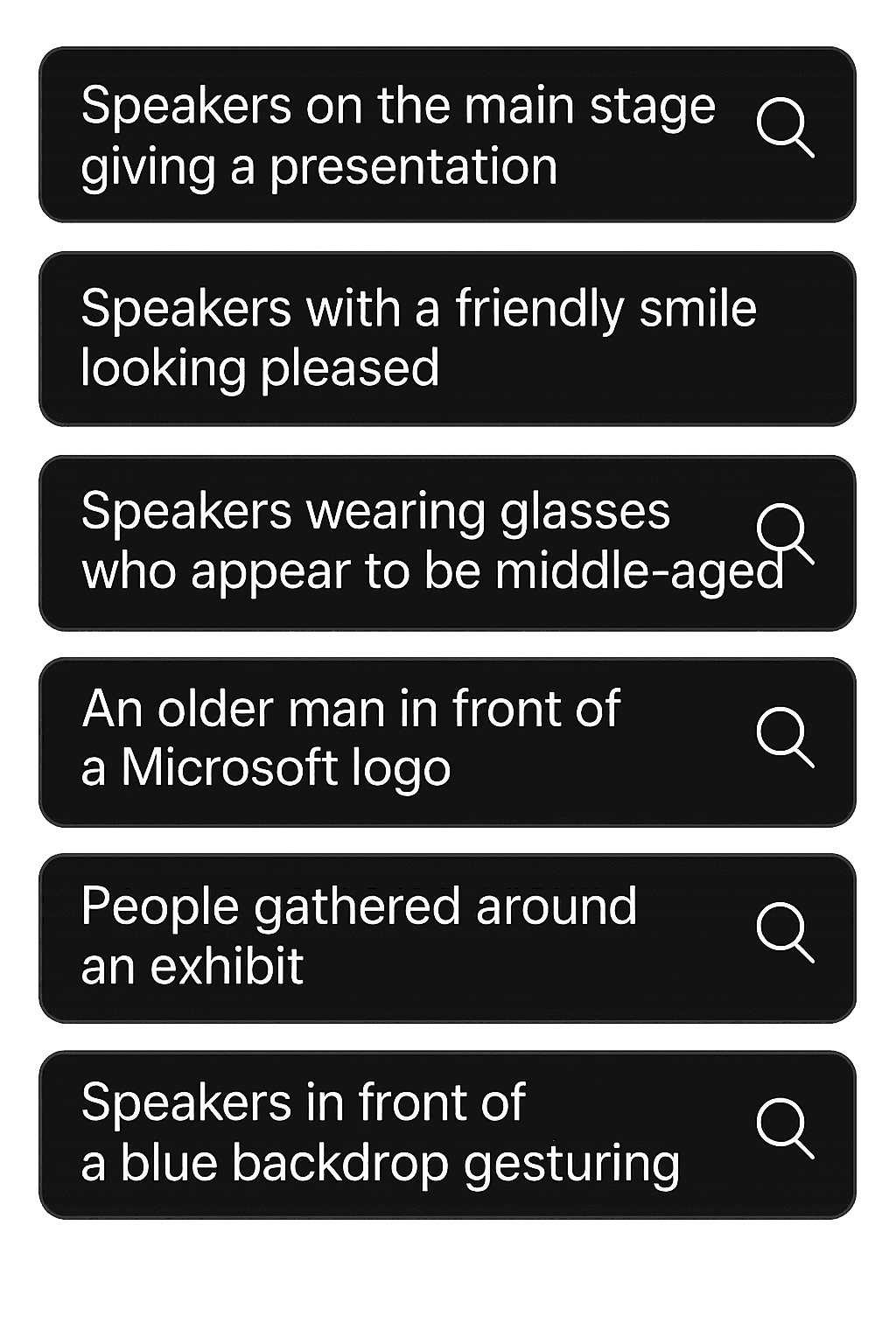 Speaker on main stage with Red Bull backdrop” or just tap a few tags. It’s that simple.